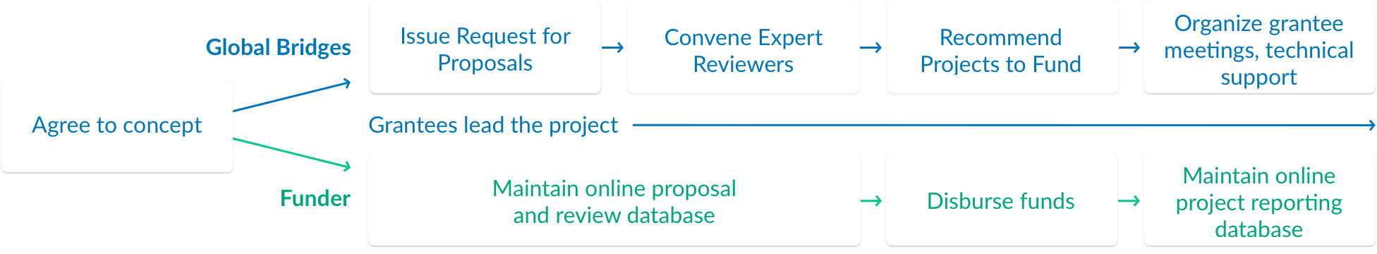 Global Bridges offers funders a proven mechanism to identify and secure funding for independent projects in capacity building and quality improvement.